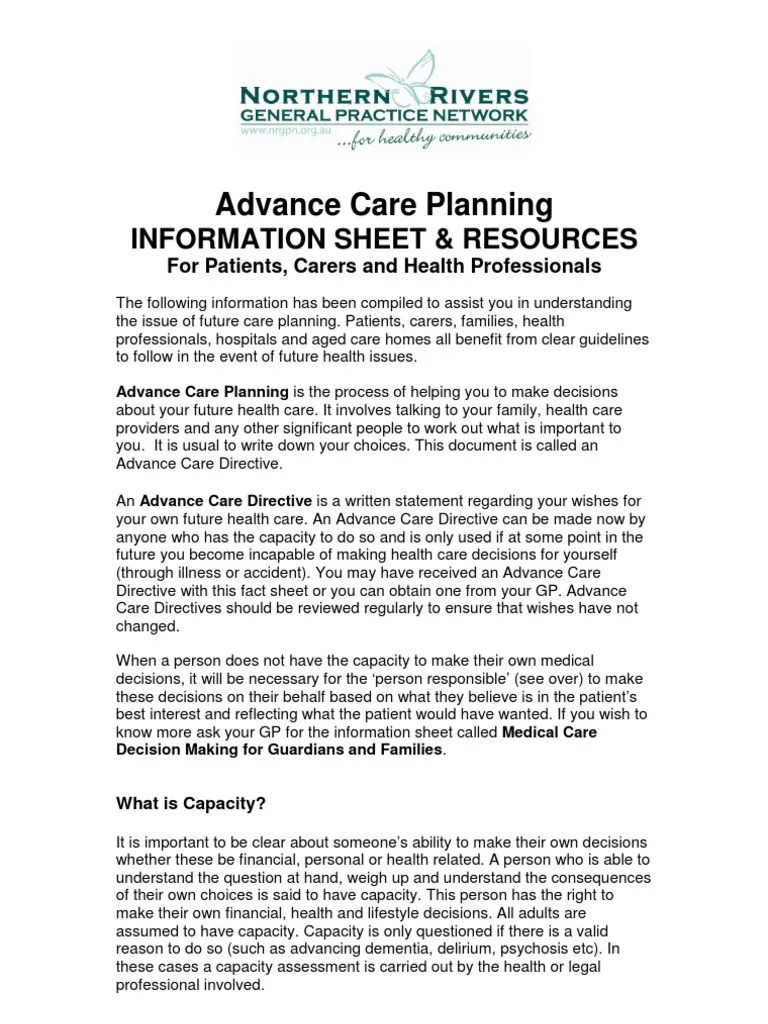 The following resources represent a broad array of materials to. Advance care planning including the explanation and discussion of advance directives such as standard forms (with completion of such forms,. Advance care planning is a process that helps you maintain your dignity and values in case you have to make difficult medical treatment decisions. Definitions and prepare for your care.