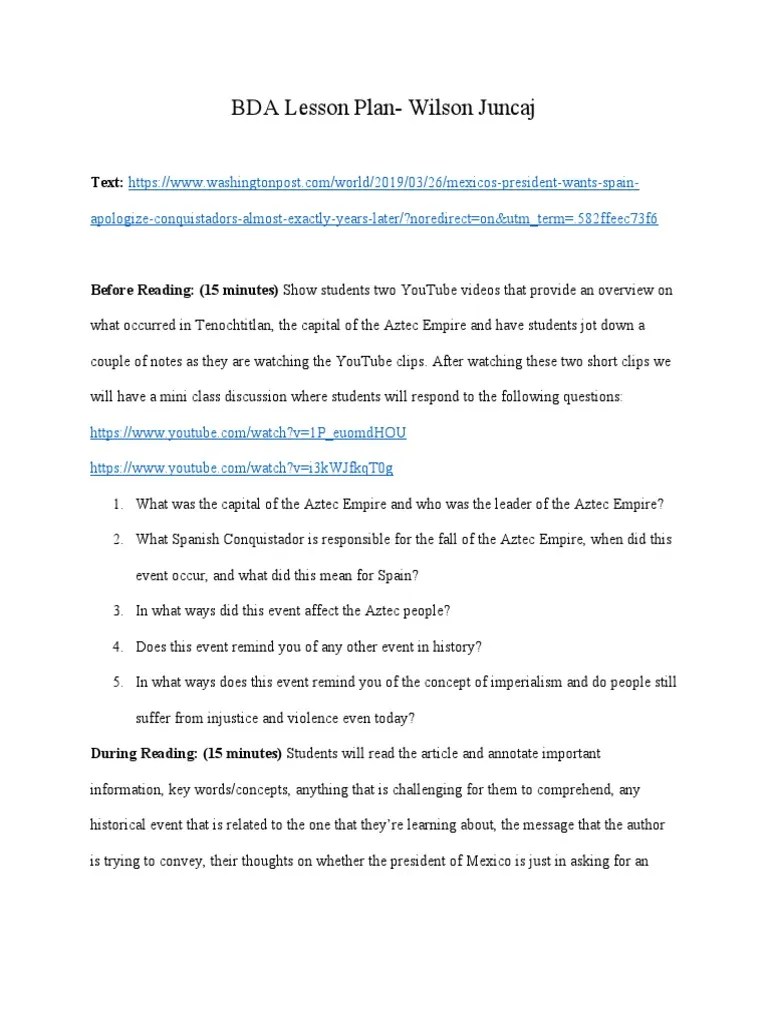 It would work for any middle or high school. University of nebraska at omaha. This is best used when reading a book to a small. This guide contains outlines for lesson planning and. A bda lesson plan is a before, during and after lesson plan.