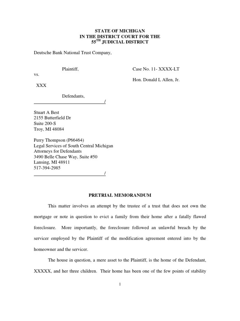 Pretrial Memo Redacted Foreclosure Mortgage Law