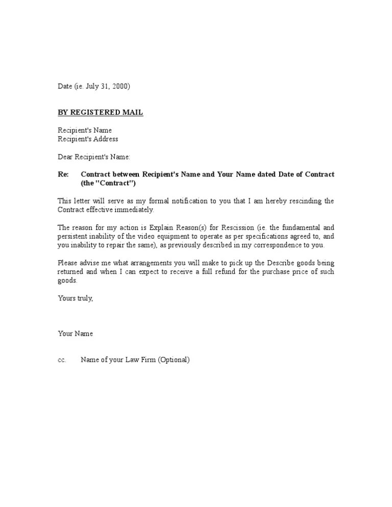 Letter to Rescind (Cancel) a Contract Legal Forms and Business